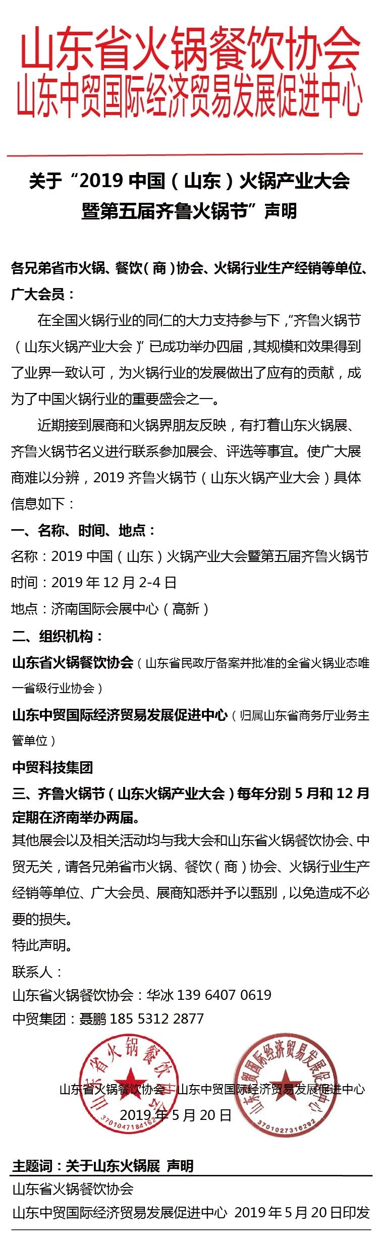 其他展會以及相關(guān)活動均與我大會和山東省火鍋餐飲協(xié)會、中貿(mào)無關(guān),請各兄弟省市火鍋、餐飲(商)協(xié)會、火鍋行業(yè)生產(chǎn)經(jīng)銷等單位、廣大會員、展商知悉并予以甄別,以免造成不必要的損失。