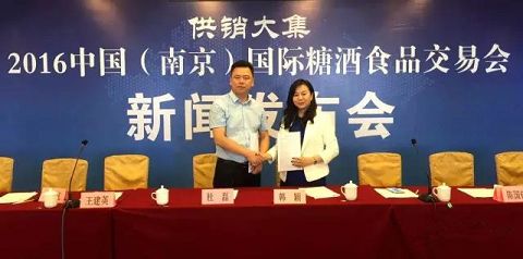 發(fā)布會正式開始之前,海南供銷大集控股有限公司華東區(qū)副總裁韓穎女士與山東中貿國際經(jīng)濟貿易推廣服務中心董事長杜磊先生就“供銷大集”2016中國(南京)國際糖酒會簽署冠名合作協(xié)議。